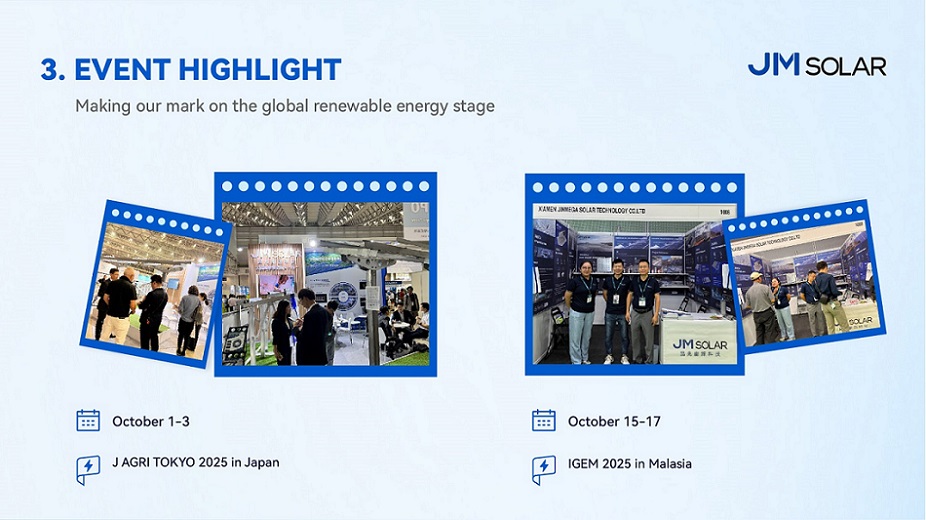 No J AGRI TOKYO 2025Apresentamos soluções de montagem personalizadas para cenários de energia solar agrícola, que atraíram grande interesse do mercado japonês. Pouco depois, em IGEM 2025 na MalásiaA JinMega apresentou soluções versáteis para telhados e garagens, com discussões no local focadas em praticidade, durabilidade e necessidades específicas de cada projeto, tornando esses eventos pontos de contato essenciais para novas parcerias.