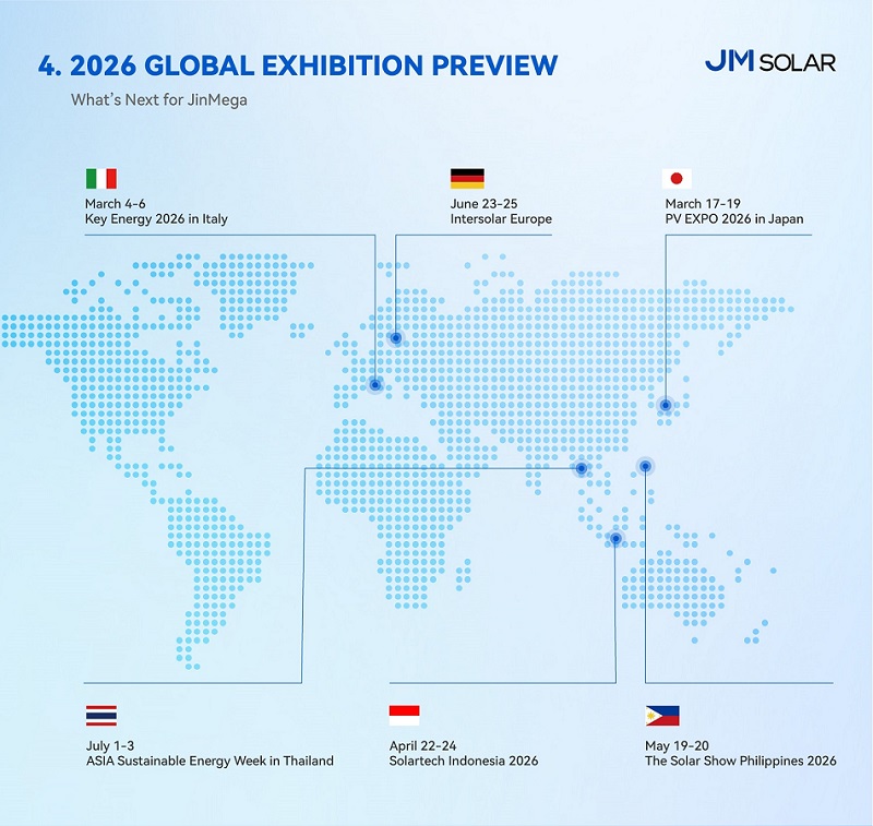 Olhando para o futuro, 2026 será um ano importante para a JinMega, à medida que continuamos a expandir nossa presença global. Estaremos reunidos com parceiros do setor na Europa e na Ásia, apresentando nossas mais recentes soluções de montagem nas principais feiras internacionais de energia solar e interagindo com mercados em diferentes estágios de desenvolvimento.