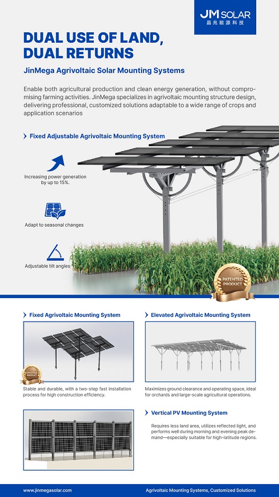 Energia limpa e agricultura podem crescer juntas. As soluções de montagem agrivoltaica da JinMega são projetadas para suportar a geração estável de energia solar, preservando a produção agrícola e criando valor duplo a longo prazo para o uso da terra.